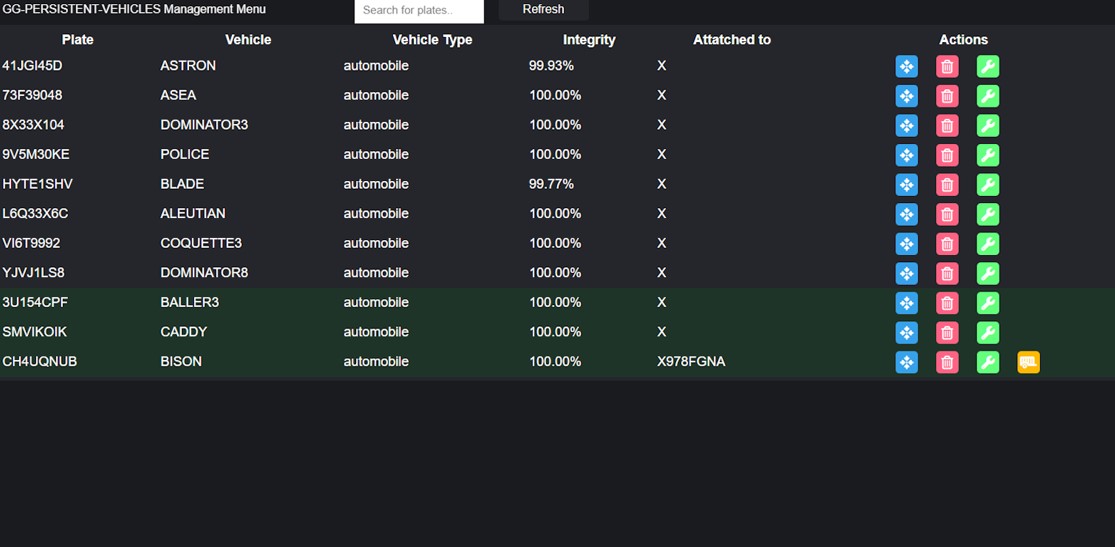 A vehicle persistence system for the modding platform FiveM (GTA5) that allows players to permanently save and manage their vehicles. Developed with a focus on performance, reliability, and user-friendliness. With a user interface, managing vehicles is simple and intuitive. A current version written in C# is still in development and is approximately 90% complete.